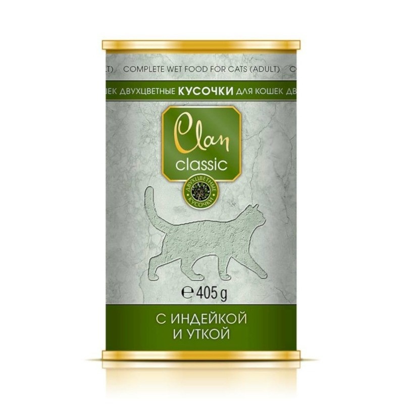 Clan Classic влажный корм для кошек кусочки с индейкой и уткой в консервах - 405 г