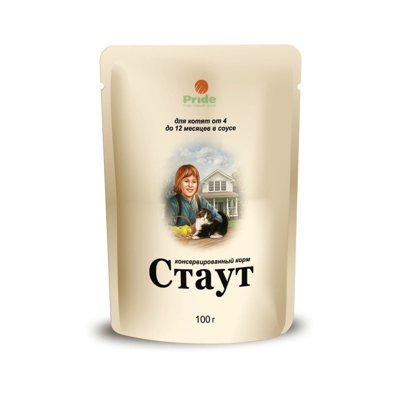 Стаут влажный корм для котят от 4 до 12 месяцев всех пород с мясом, рыбой и овощами в соусе - 100 г