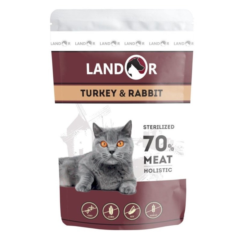 Landor влажный корм для стерилизованных кошек с индейкой и кроликом в паучах - 85 г