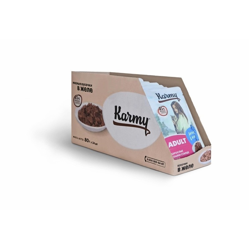 Karmy Adult влажный корм для кошек старше 1 года с лососем в желе - 80 г