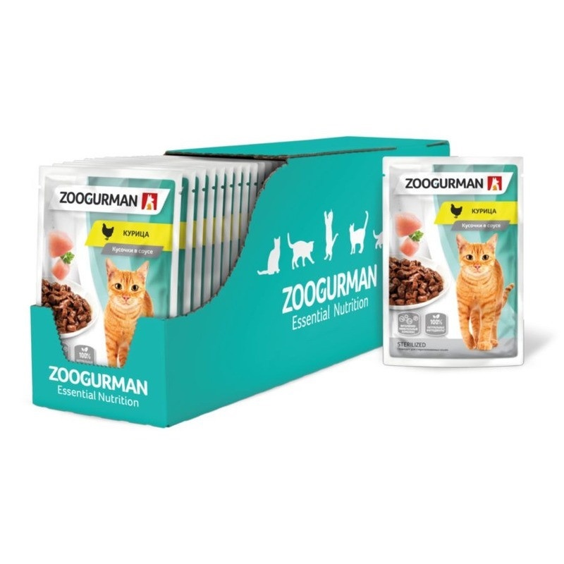 Зоогурман влажный корм для взрослых кошек всех пород с курицей в паучах - 85 г