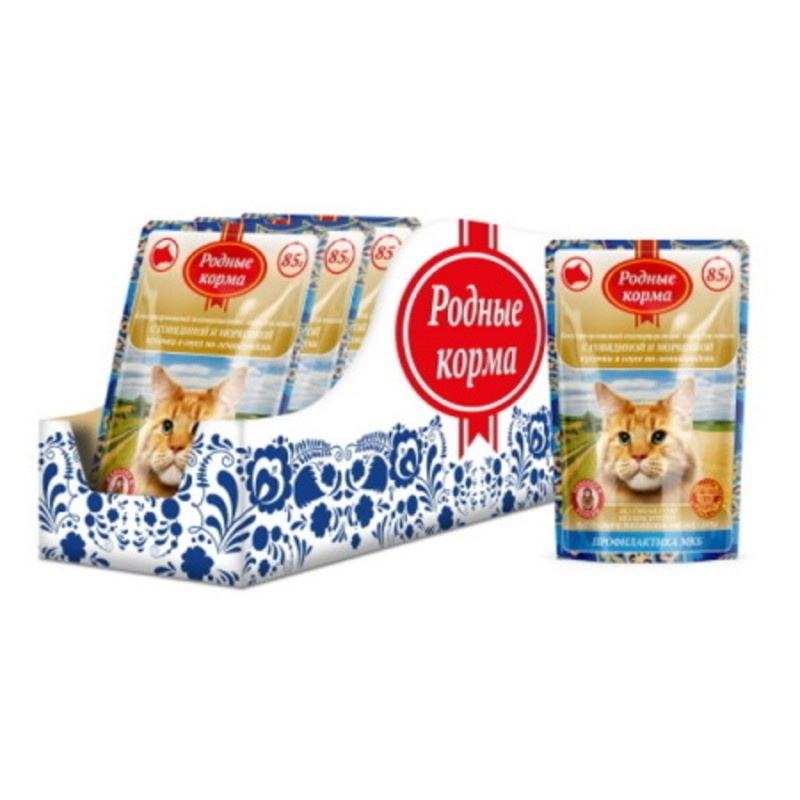 Родные корма полнорационный корм для кошек с говядиной и морковкой кусочки в соусе по-ленинградски 1х32 пауч 85 г