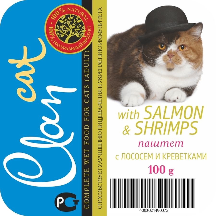 Clan Cl21 паштет для кошек с лососем и креветками в консервах - 100 г