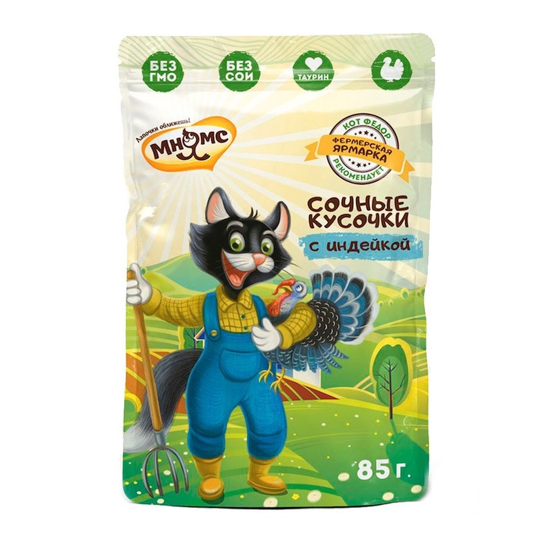 Мнямс Кот Федор влажный корм для взрослых кошек с индейкой "Фермерская ярмарка" - 85 г