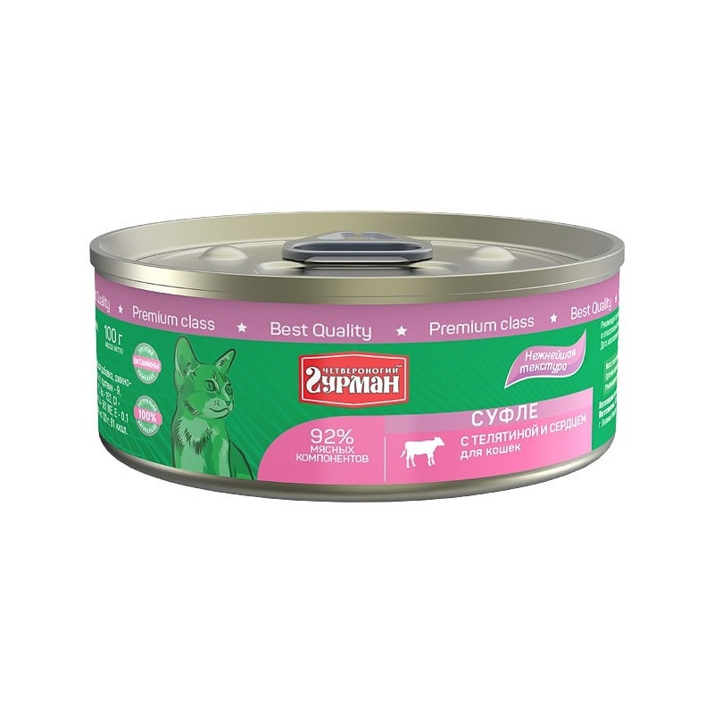 Влажный корм Четвероногий Гурман суфле для кошек с телятиной и сердцем - 100 г