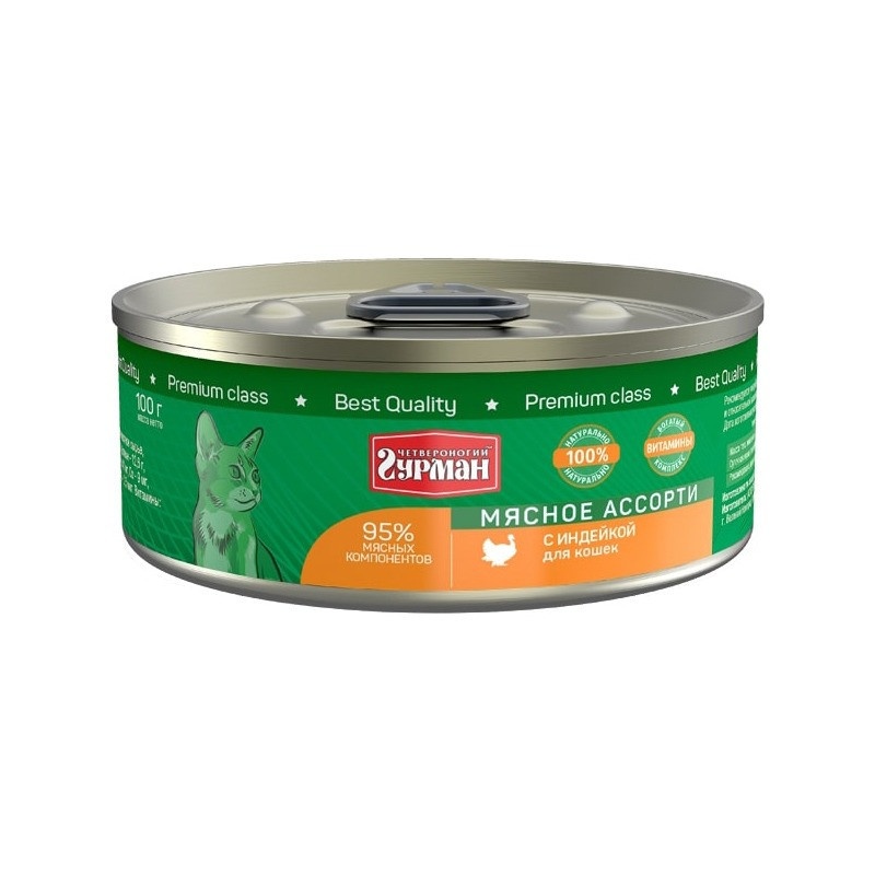 Четвероногий Гурман Мясное ассорти с индейкой для кошек 100 г