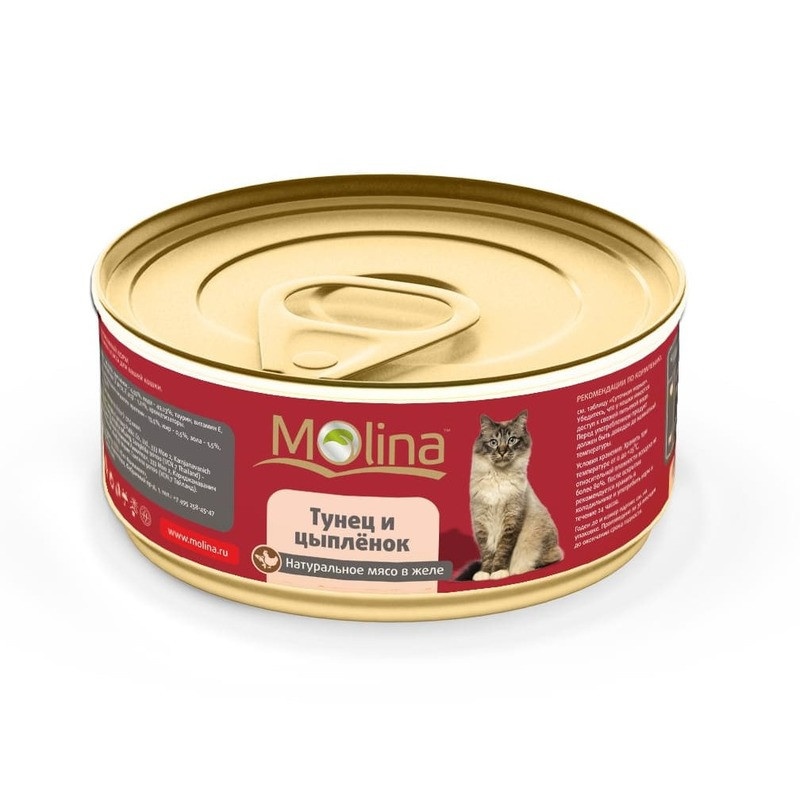 Влажный корм Molina для взрослых кошек с тунцом и цыпленком в желе в консервах - 80 г