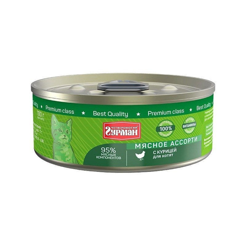 Четвероногий Гурман Мясное ассорти с курицей для котят 100 г