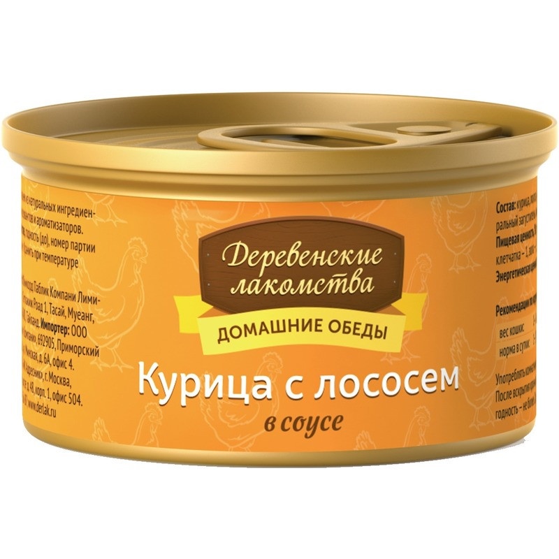 Деревенские лакомства влажный корм для кошек с курицей и лососем в соусе - 80 г