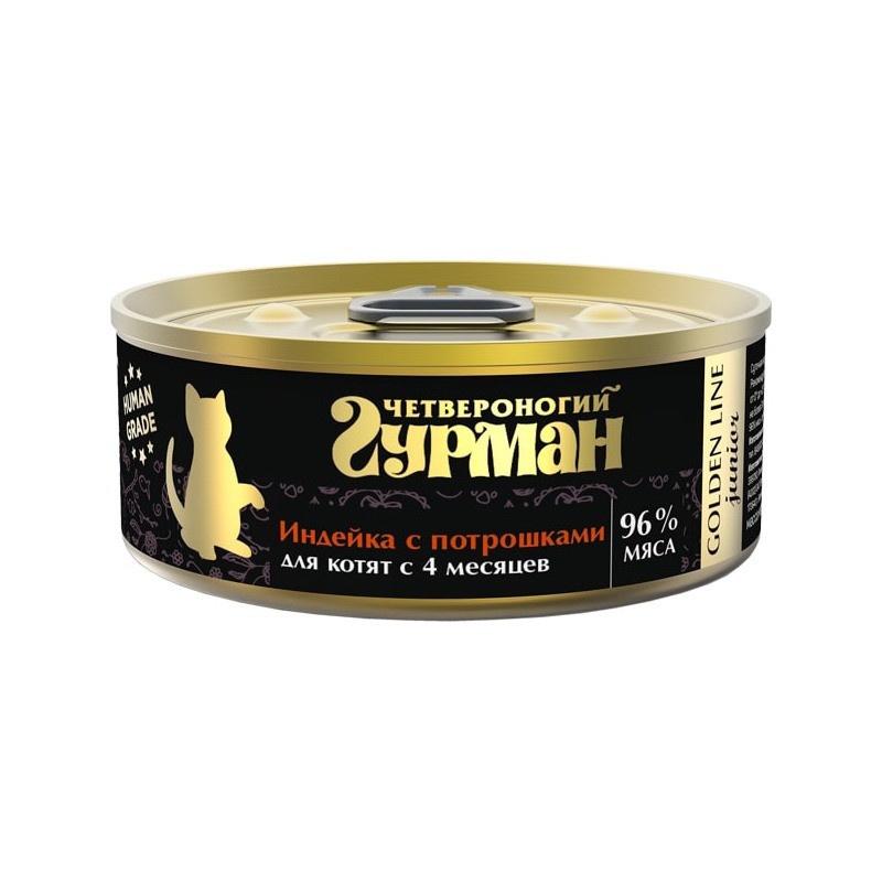 Влажный корм Четвероногий Гурман Golden line для котят индейка с потрошками в желе - 100 г