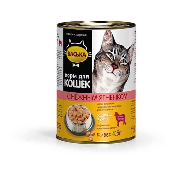 Влажный корм Васька для кошек с ягненком в соусе - 415 г