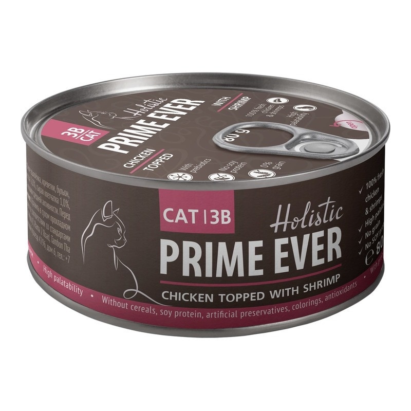 Prime Ever влажный корм для взрослых кошек с цыпленком и креветками в желе - 80 г