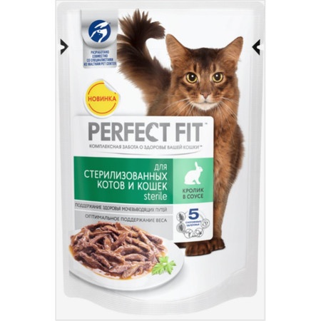 Паучи Perfect Fit Sterile для взрослых кастрированны котов и стерилизованных кошек до 8 лет с кроликом в соусе - 85 г