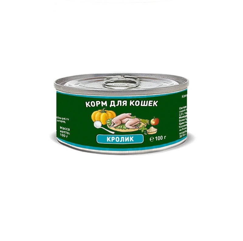 кролик, желирующая добавка, таурин, вода. Анализ компонентов на 100 гр: Минеральные вещества на 100 гр: Энергетическая ценность на 100 гр продукта: 144 ккал.