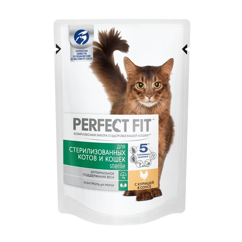 Паучи Perfect Fit Sterile для взрослых кастрированны котов и стерилизованных кошек до 8 лет с курицей в соусе - 85 г