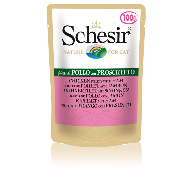 Schesir для кошек в паучах с куриным филе и ветчиной - 100 г