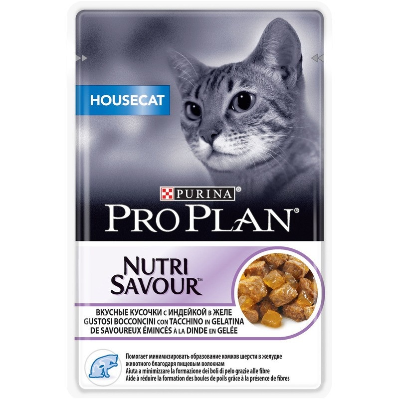 Для кошек, живущих дома. С индейкой в желе. Содержит пребиотики для уменьшения запаха из лотка. Способствует поддержанию оптимальной массы тела.