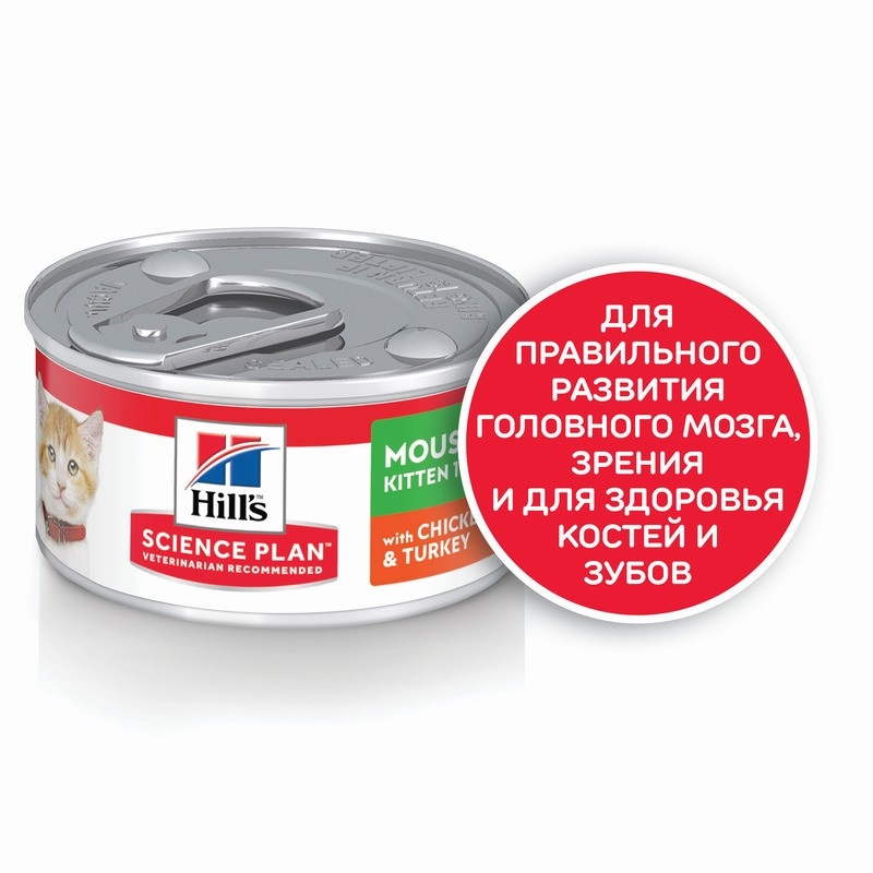 Влажный корм Hill's Science Plan для котят для здорового роста и развития, мусс с курицей и индейкой - 82 г