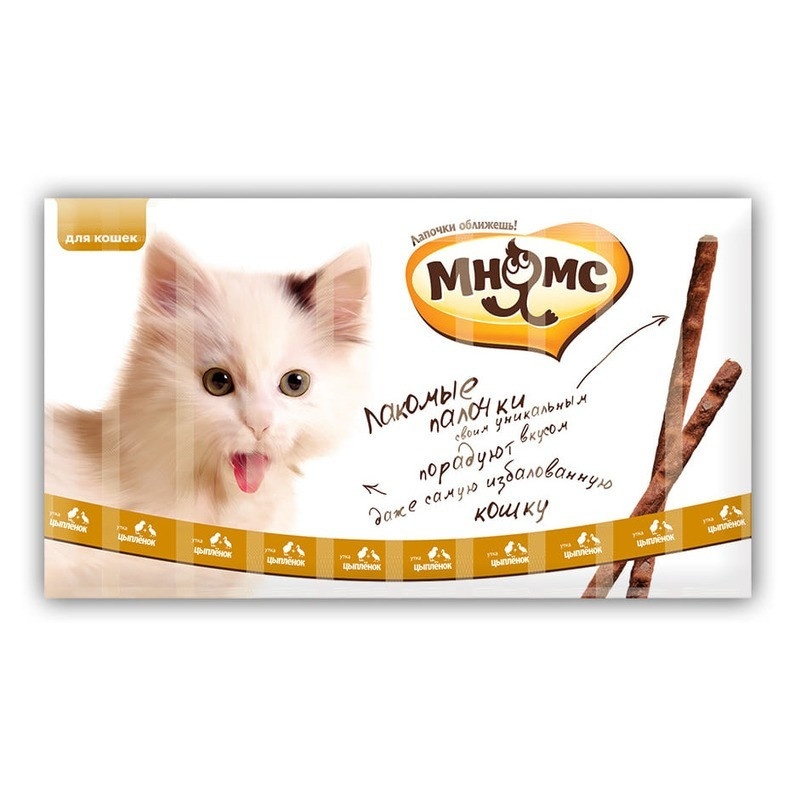 Мнямс лакомые палочки с цыпленком и уткой – отличный выбор для вашей кошки. Мягкие палочки изготовлены из высококачественного натурального сырья и подходят для кормления котят с 4-х месяцев.м
