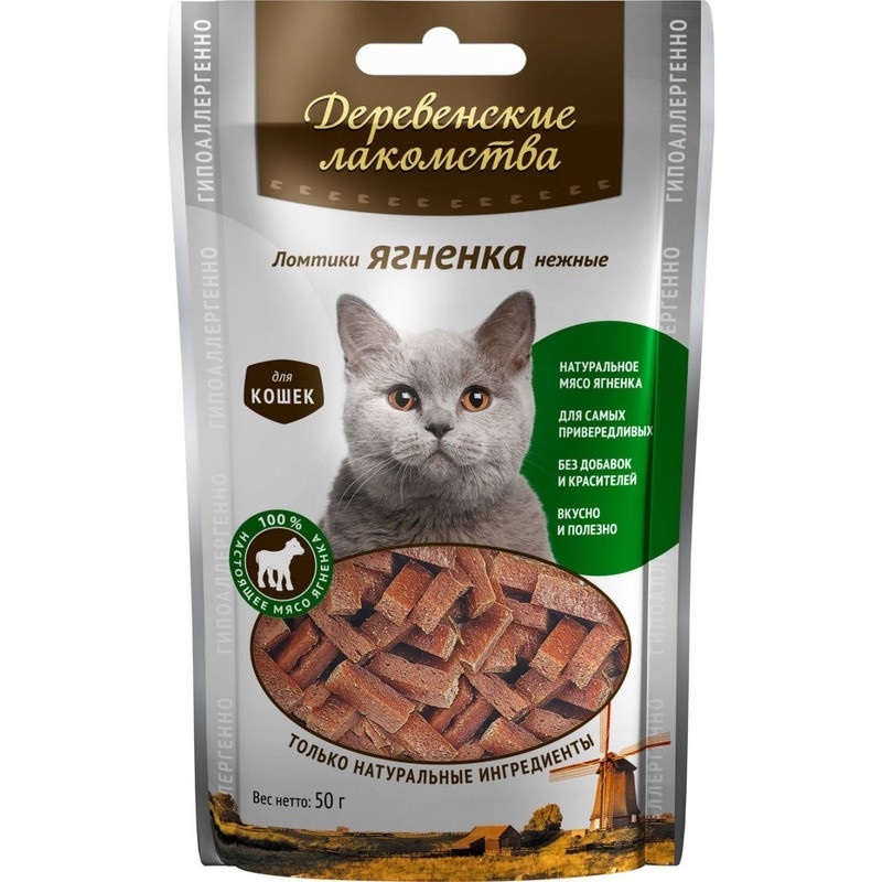 ДЕРЕВЕНСКИЕ ЛАКОМСТВА Ломтики ягненка нежные для кошек 50гр