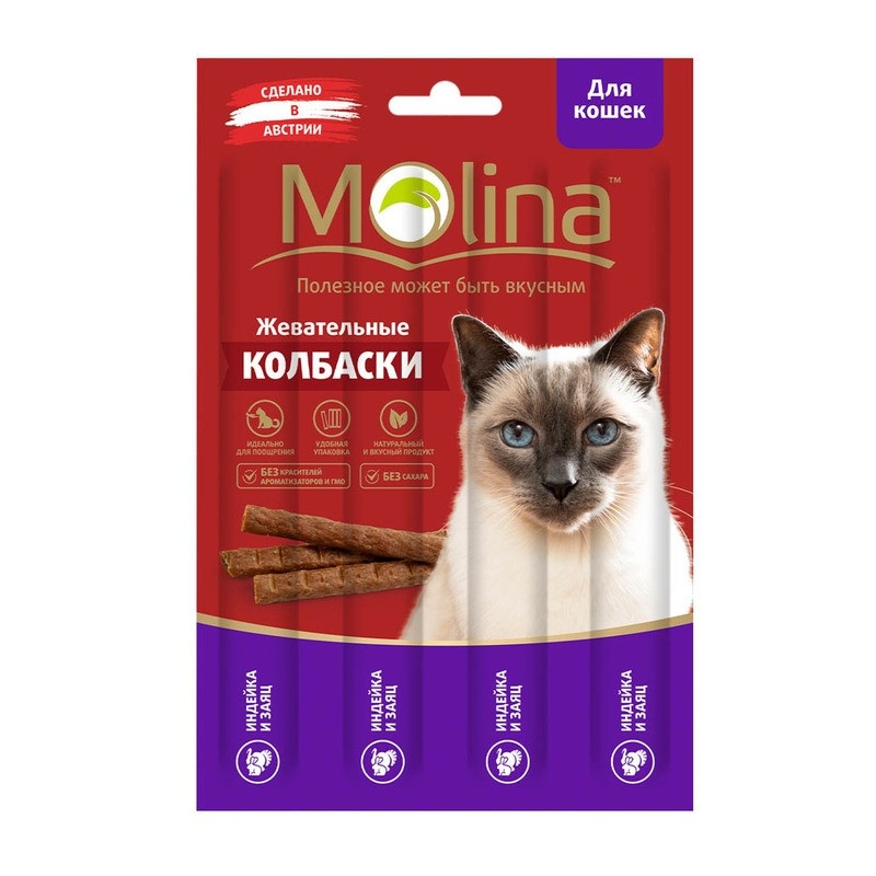 Molina Жевательные колбаски для кошек с индейкой и зайцем 20 г