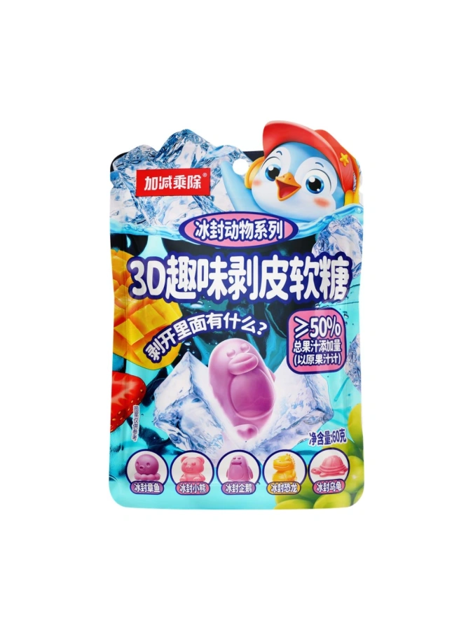 Конфеты жел.с фрукт.соком ПИНГВИНЫ ( КЛУБНИКИ, МАНГО, ВИНОГРАДА, ЯБЛОКА) 60г