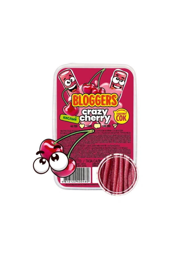 Мармелад "Крейзи Черри" (трубочка) в кисло-сладкой обсыпке жеват. со вкусом вишни с желейн. нач. 200г