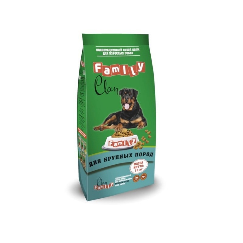 Clan Family сухой корм для взрослых собак крупных пород с курицей - 15 кг