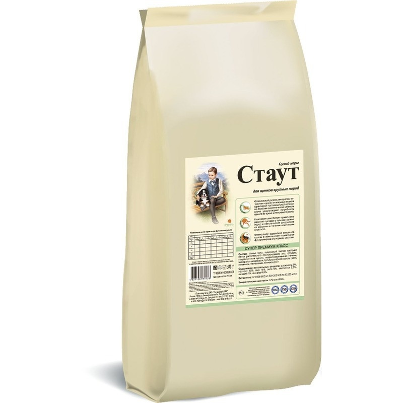 Стаут сухой корм для щенков крупных пород с мясом и злаками - 15 кг
