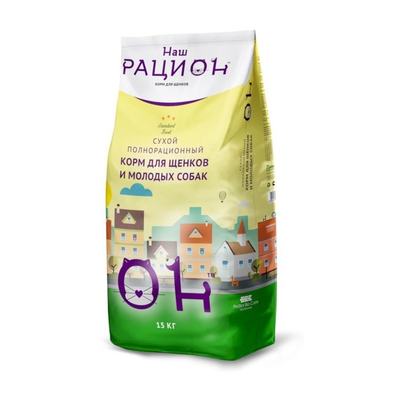 Наш рацион сухой корм для щенков и молодых собак с птицей - 15 кг