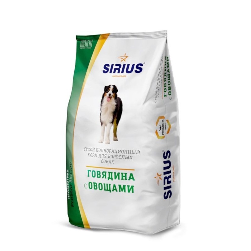 Sirius Сухой корм для взрослых собак, говядина с овощами 3 кг