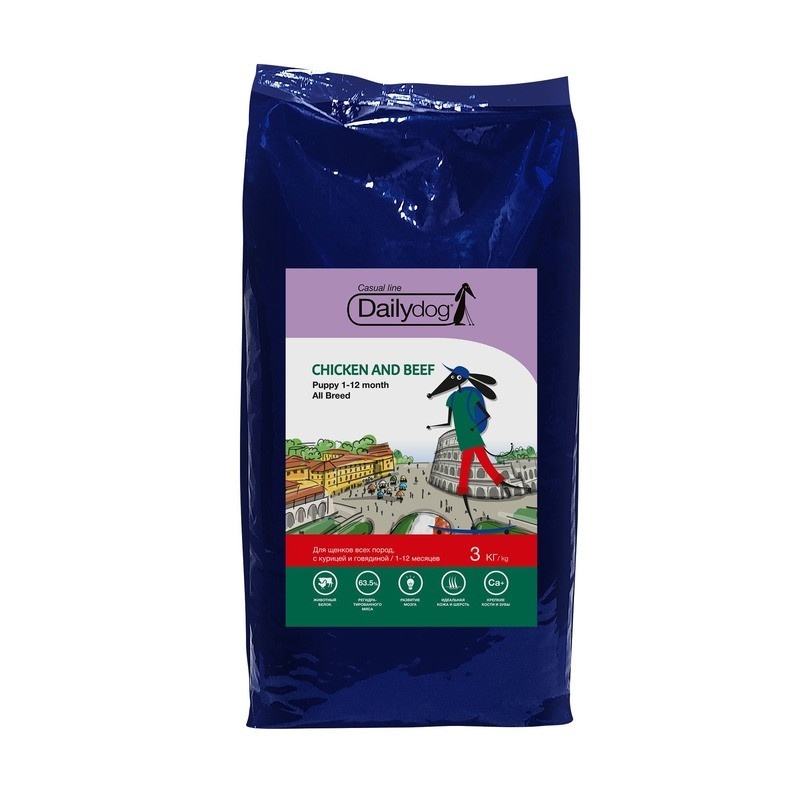 Dailydog Casual Line Puppy All Breed сухой корм для щенков всех пород с курицей и говядиной 3 кг