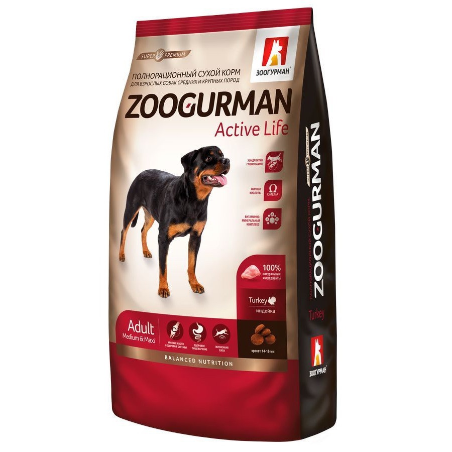 Зоогурман Active Life для взрослых собак с индейкой - 12 кг
