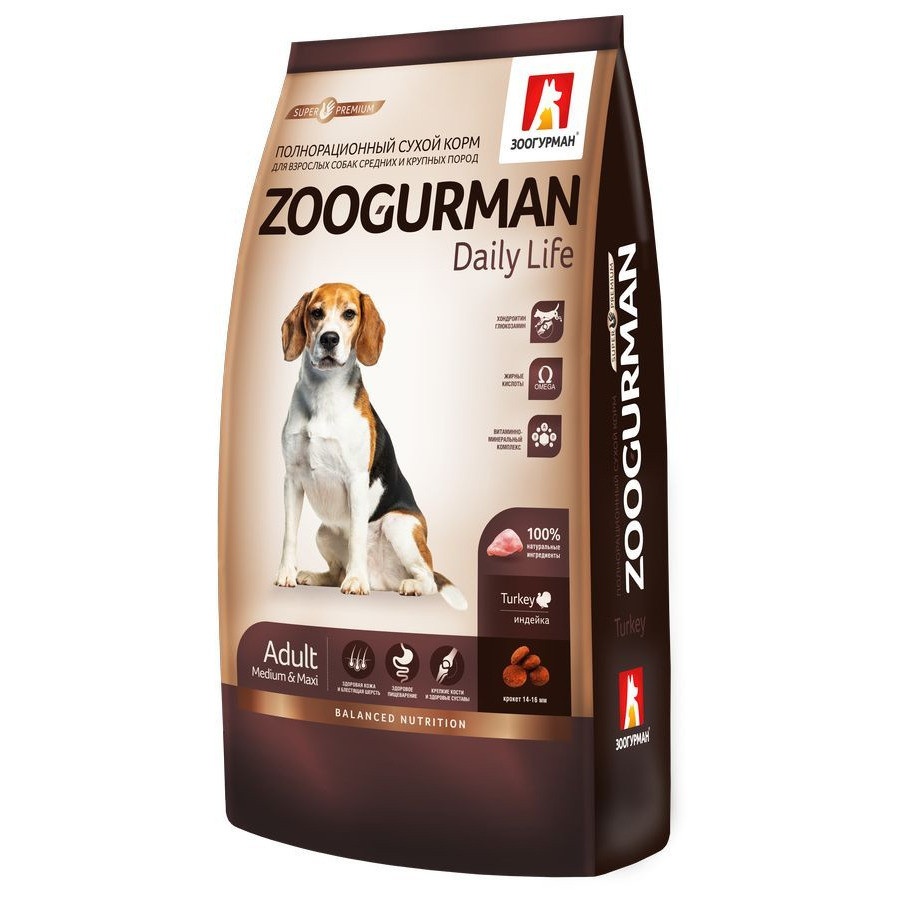 Зоогурман Daily Life для взрослых собак с индейкой, 12 кг