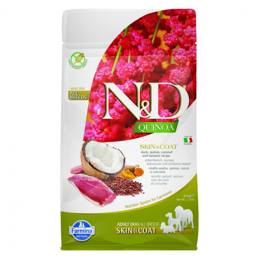Farmina N&D Dog GF Quinoa Skin & Coat сухой беззерновой корм для взрослых собак для кожи и шерсти с уткой и киноа - 800 г