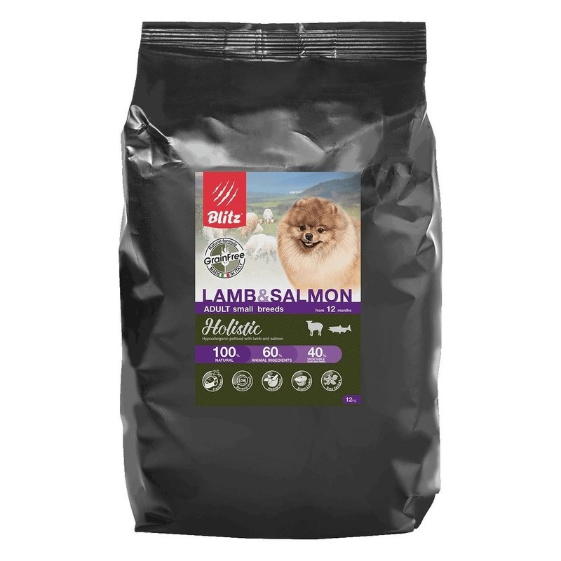 Сухой беззерновой корм Blitz Adult для взрослых собак с ягненком и лососем - 12 кг