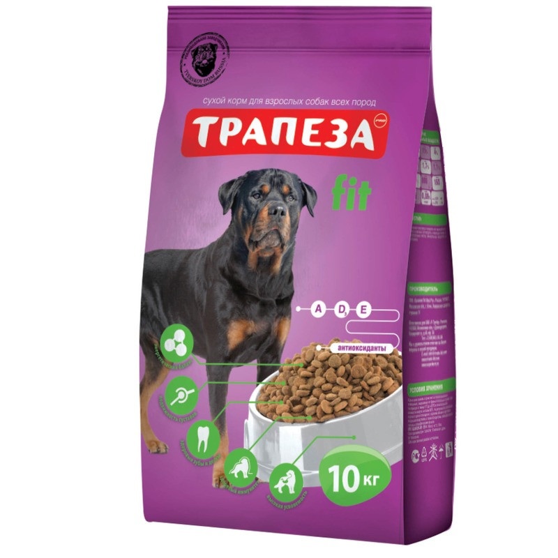 Сухой корм Трапеза Fit для взрослых собак с регулярными физическими нагрузками со свининой, говядиной и курицей - 10 кг