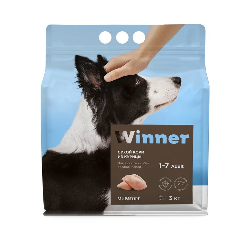 Сухой корм Winner для взрослых собак средних пород с курицей - 3 кг