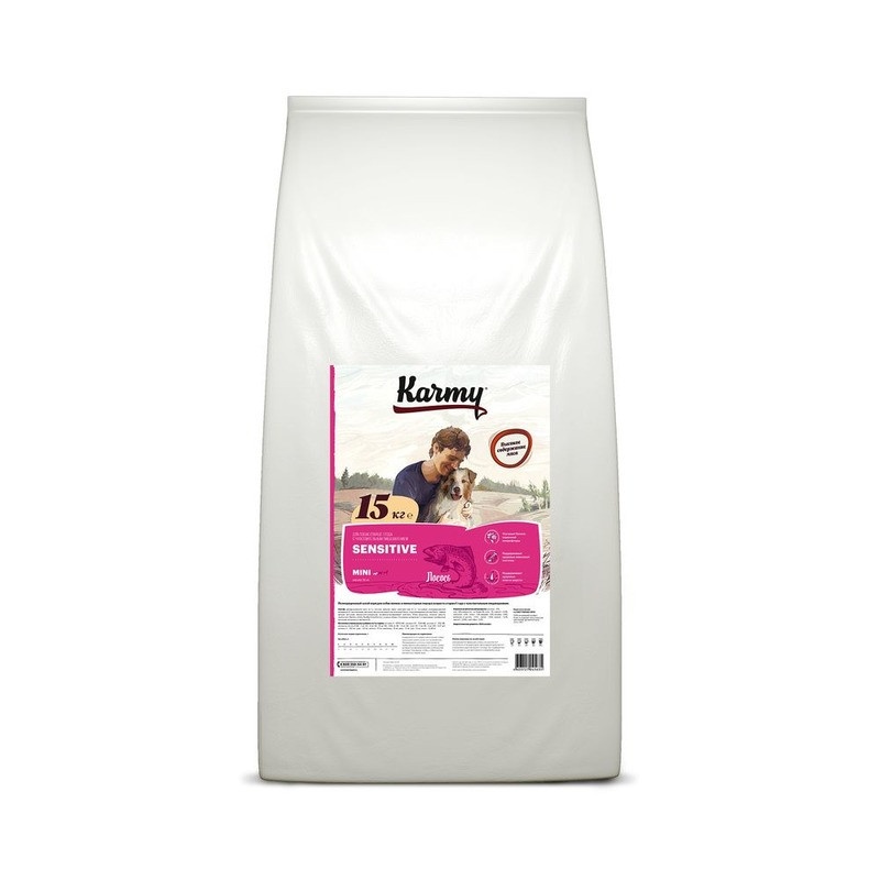 Сухой корм Karmy Mini Sensetive для взрослых собак мелких пород с чувствительным пищеварением с лососем 15 кг