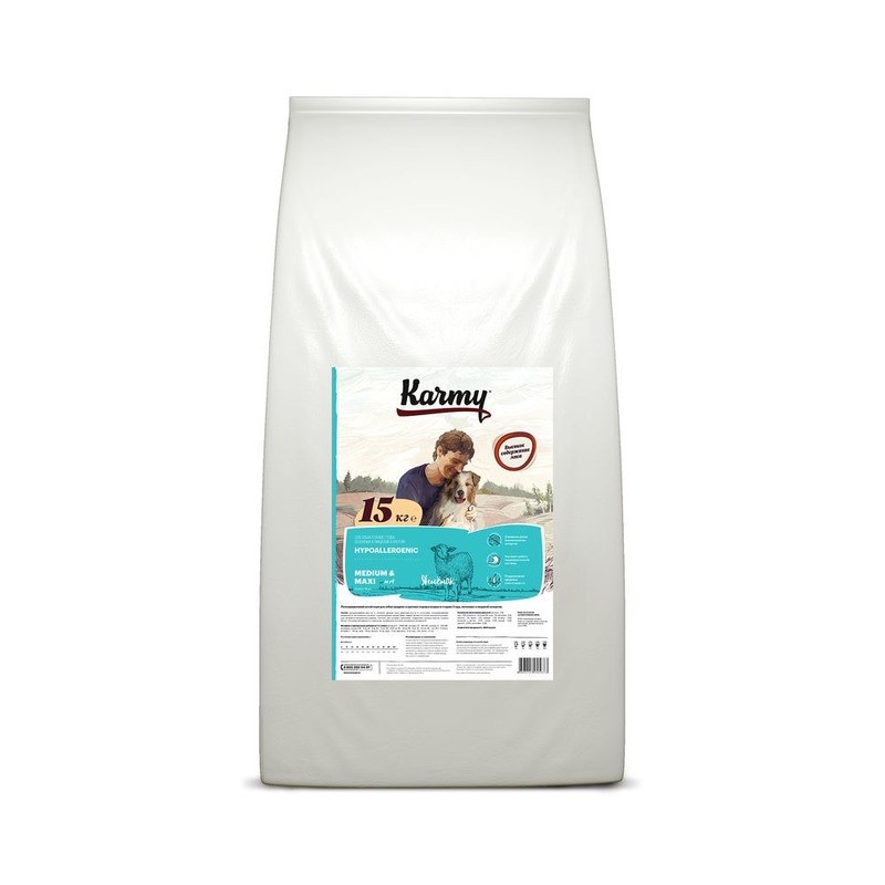 Karmy Hipoallergenic Medium & Maxi – сухой корм для взрослых собак средних и крупных пород старше 1 года, склонных к пищевой аллергии.