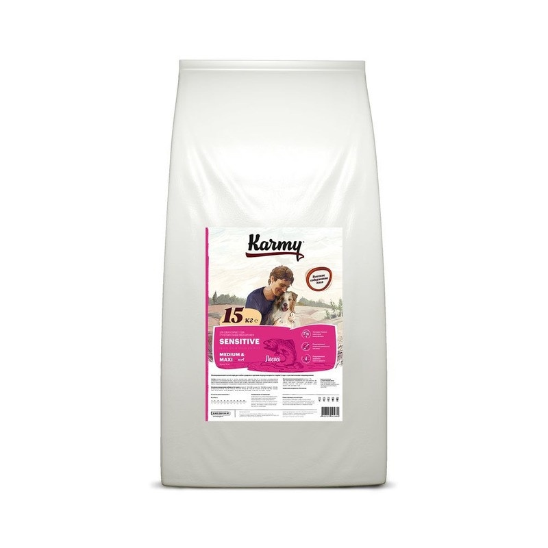 Сухой корм Karmy Sensetive Medium & Maxi для взрослых собак средних и крупных пород с чувствительным пищеварением с лососем 15 кг