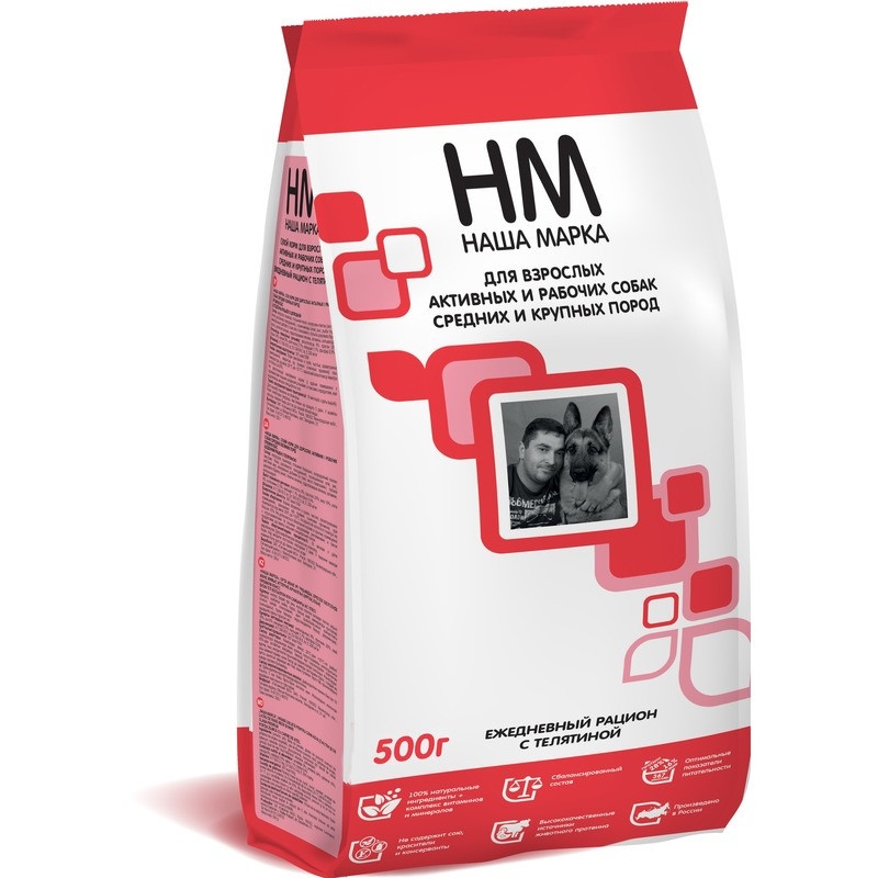 Наша Марка сухой корм для взрослых активных и рабочих собак средних и крупных пород с телятиной 500 г