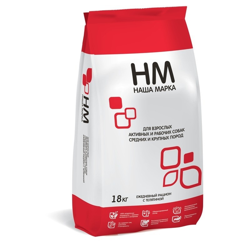 Наша Марка сухой корм для взрослых активных и рабочих собак средних и крупных пород с телятиной 12 кг