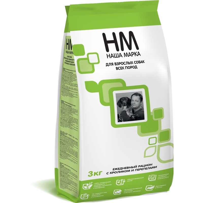 Наша Марка сухой корм для взрослых собак всех пород с кроликом и перепелами 3 кг
