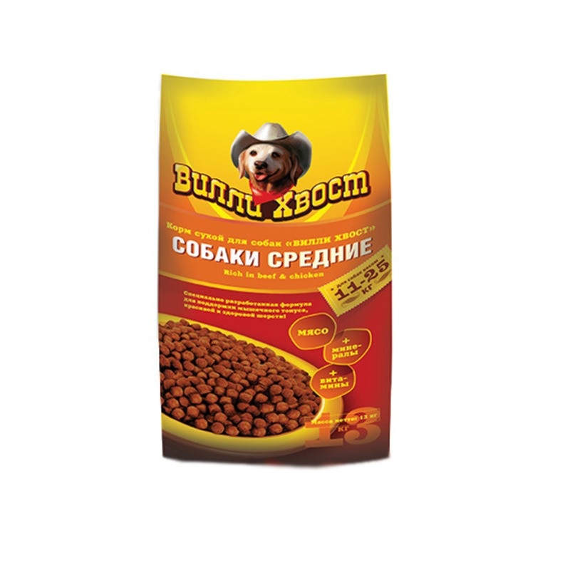 Вилли Хвост сухой корм для собак средних пород - 13 кг