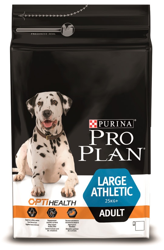 Корм сухой полнорационный Purina® PRO PLAN® Large Adult Athletic с комплексом OPTIHEALTH® для взрослых собак крупных пород с атлетическим телосложением, с курицей и рисом.