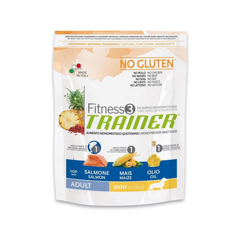 Trainer Fitness3 No Gluten Mini Adult Salmon and Maize на основе мяса лосося с добавление кукурузы и масла 2 кг