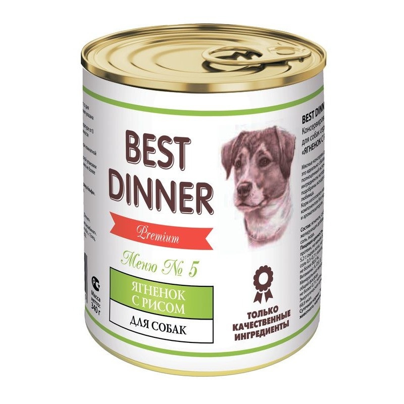 Best Dinner консервы для собак Меню № 5 - Ягненок с рисом - 340 г