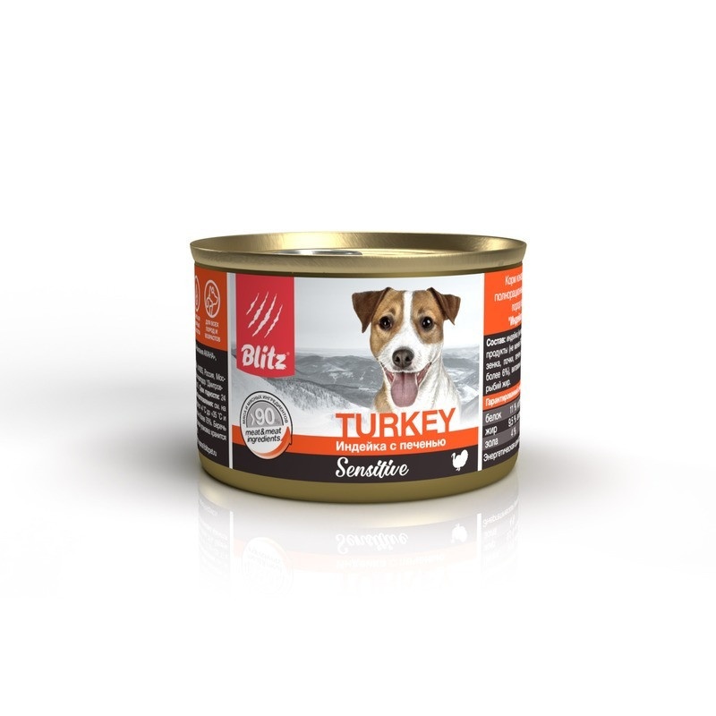Blitz Sensitive влажный корм для собак всех пород и возрастов с индейкой и печенью - 200 г