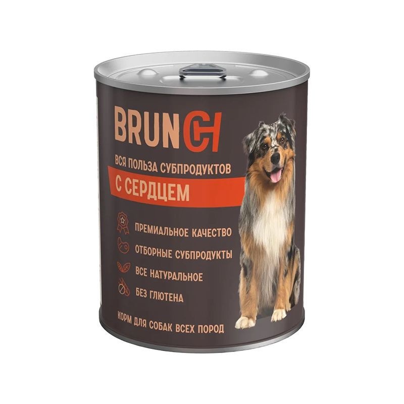 Brunch влажный корм для взрослых собак с сердцем в консервах - 340 г